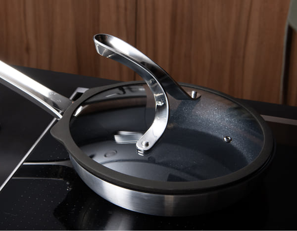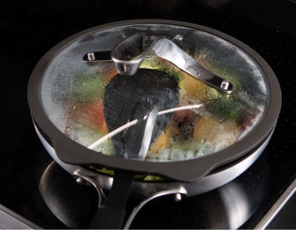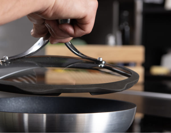 הוסיפו את מכסה Emura למחבת ותראו את הקסם שלה! ההתאמה והעיצוב המותאמים אישית שלו מקדמים אידוי אחיד, עם חור אוורור למניעת בישול יתר.